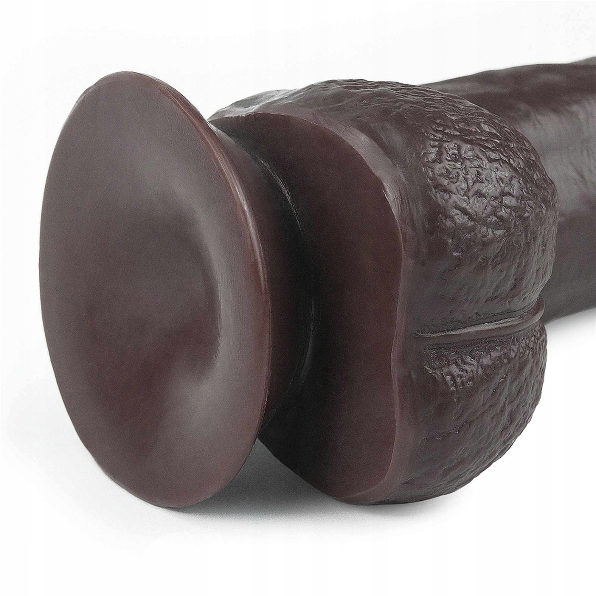 Wzorowane na realnym penisie, wyraźnie wyodrębnione tekstury żył oraz jądra.