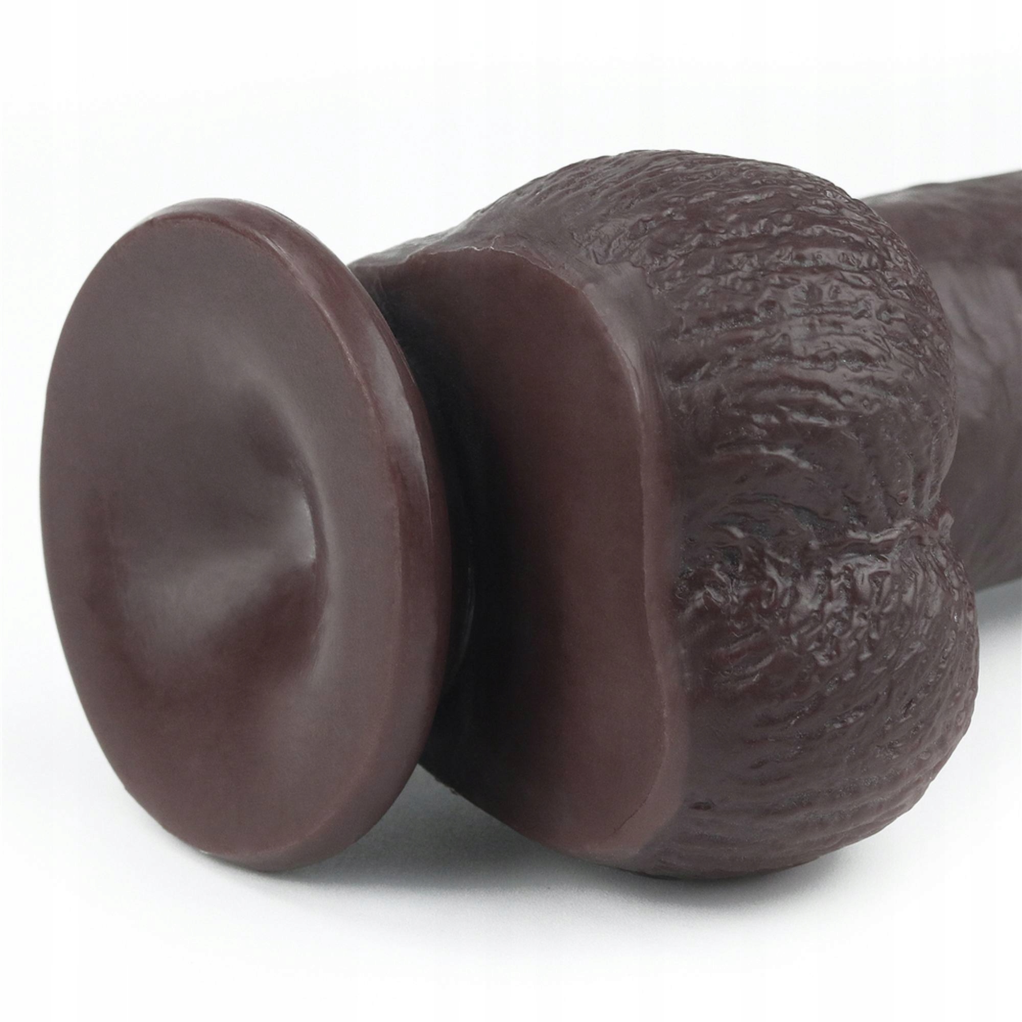 Wzorowane na realnym penisie, wyraźnie wyodrębnione tekstury żył oraz jądra.