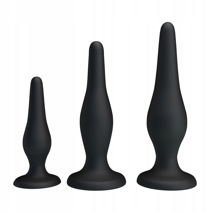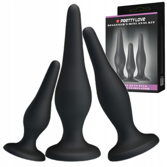 Zestaw analnych wtyczek Pretty Love Mini Anal Kit pomoże ci w prawidłowym treningu analnym. Zestaw zawiera 3 silikonowe zatyczki o różnych rozmiarach - 8,5 x 2,5 cm, 11,5 x 2,8 cm, 13 x 3,5 cm