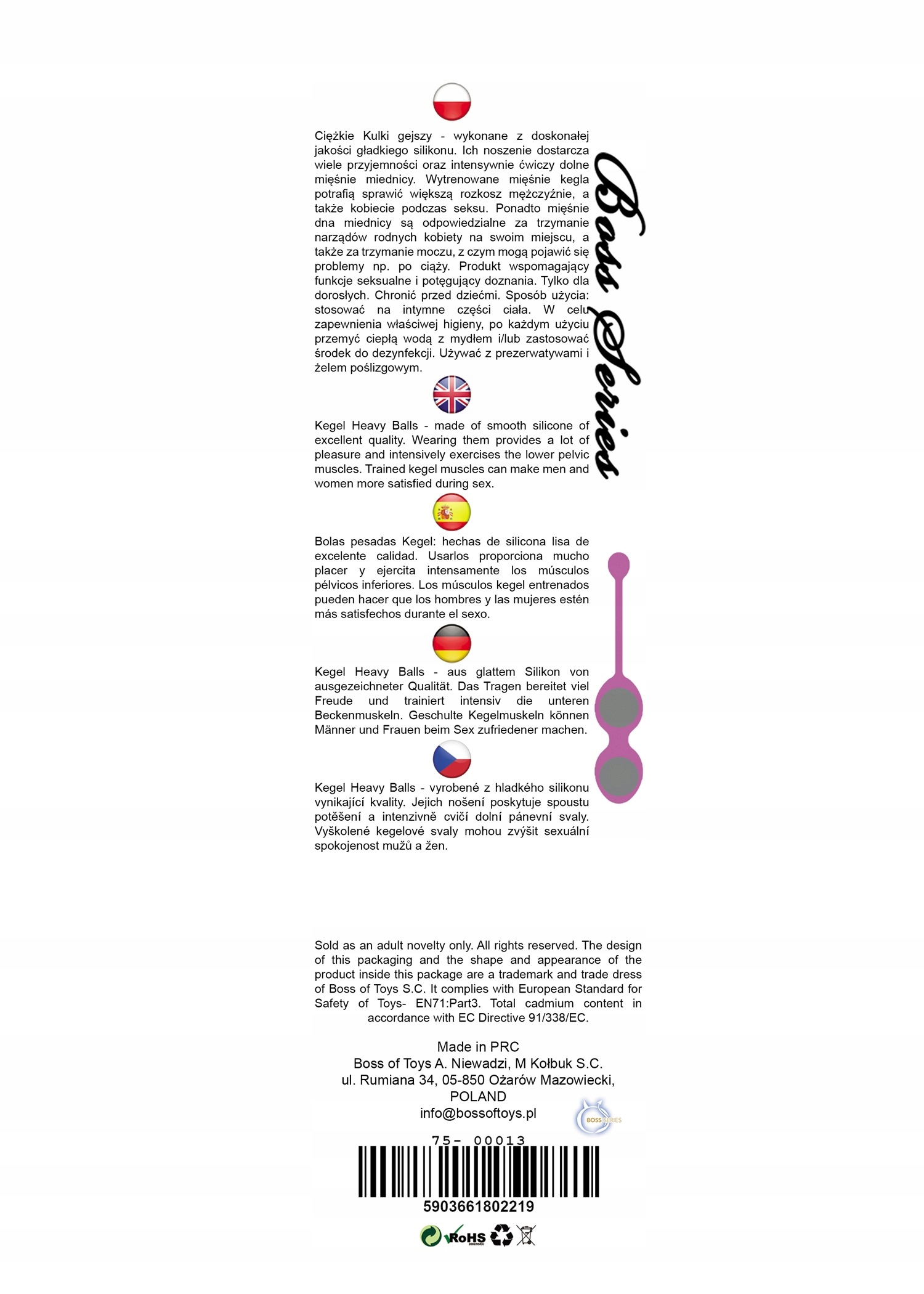 Zrobione zostały z doskonałej jakości silikonu medycznego. Zainstalowane w środku stalowe kulki sprawiają dużą przyjemność swoim drżeniem, do którego dochodzi podczas ruchu. Wytrenowane mięśnie kegla potrafią sprawić większą rozkosz mężczyźnie, a także kobiecie podczas seksu. Ponadto mięśnie dna miednicy są odpowiedzialne za trzymanie narządów rodnych kobiety na swoim miejscu, a także za trzymanie moczu, z czym mogą pojawić się problemy np. po ciąży.