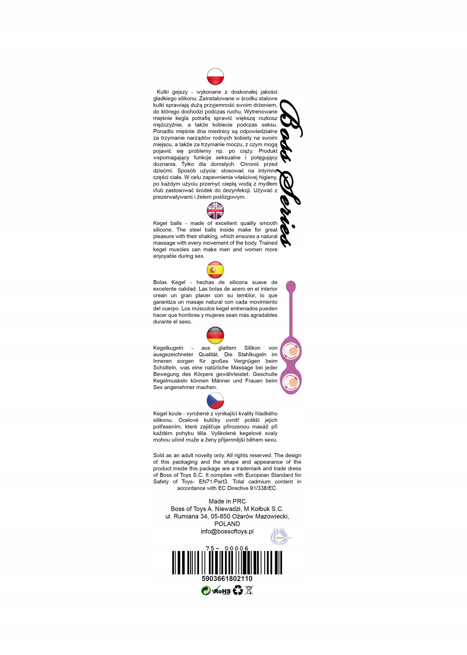 Zrobione zostały z doskonałej jakości silikonu medycznego. Zainstalowane w środku stalowe kulki sprawiają dużą przyjemność swoim drżeniem, do którego dochodzi podczas ruchu. Wytrenowane mięśnie kegla potrafią sprawić większą rozkosz mężczyźnie, a także kobiecie podczas seksu. Ponadto mięśnie dna miednicy są odpowiedzialne za trzymanie narządów rodnych kobiety na swoim miejscu, a także za trzymanie moczu, z czym mogą pojawić się problemy np. po ciąży.